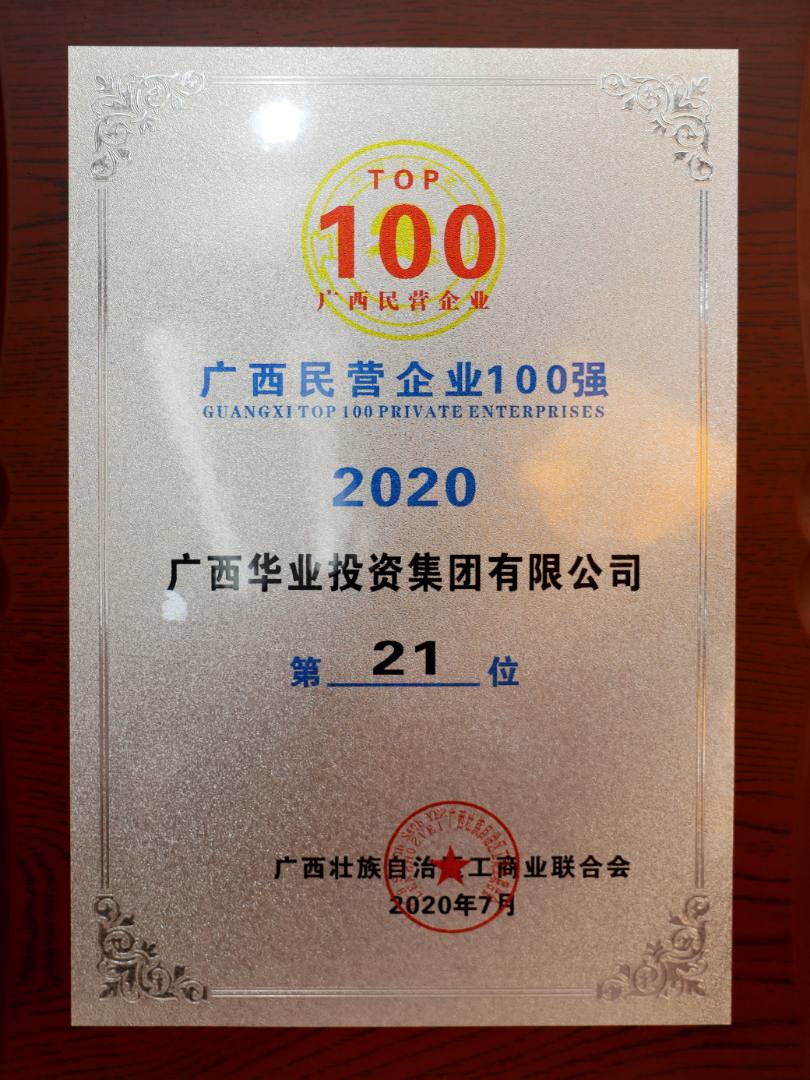 2020廣西民營(yíng)企業(yè)100強(qiáng)第21名